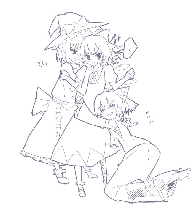 peke (pekeiscat), chihaya anon, kaname raana, nagasaki soyo, shiina taki, takamatsu tomori, bang dream!, bang dream! it's mygo!!!!!, commentary, hashtag-only commentary, highres, > <, 5girls, bandaid, bandaid on knee, bandaid on leg, black hair, black shirt, black shoes, black socks, blue eyes, blue shirt, blue skirt, blush, brown dress, brown hair, closed mouth, confetti, diagonal-striped clothes, diagonal-striped necktie, dress, fang, green necktie, green skirt, grey hair, grey jacket, grey neckerchief, hanasakigawa school uniform, hand on own hip, haneoka school uniform, heterochromia, jacket, kneehighs, kneeling, layered sleeves, long hair, long sleeves, medium hair, mole, mole under eye, multiple girls, mygo!!!!! (bang dream!), neckerchief, necktie, open mouth, party popper, pink hair, plaid clothes, plaid skirt, pleated skirt, pointing, pointing up, purple eyes, sailor dress, school uniform, shirt, shoes, short hair, short over long sleeves, short sleeves, simple background, skirt, socks, striped clothes, sweatdrop, tsukinomori school uniform, white background, white hair, white shirt, wolf cut, yellow eyes