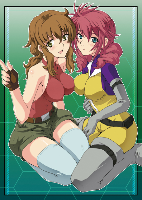 narutaki shin, reinforce zwei, yagami hayate, lyrical nanoha, mahou shoujo lyrical nanoha, mahou shoujo lyrical nanoha strikers, translated, 00s, 1girl, breasts, covered erect nipples, female focus, hair ornament, koonago, large breasts, mini person, minigirl, panties, panty pull, sexually suggestive, solo, underwear, x hair ornament, yuri