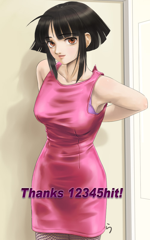 black hairdressfishnet pantyhosefishnetsmilestone celebrationorange eyespantyhoseshort hairsoloundressing