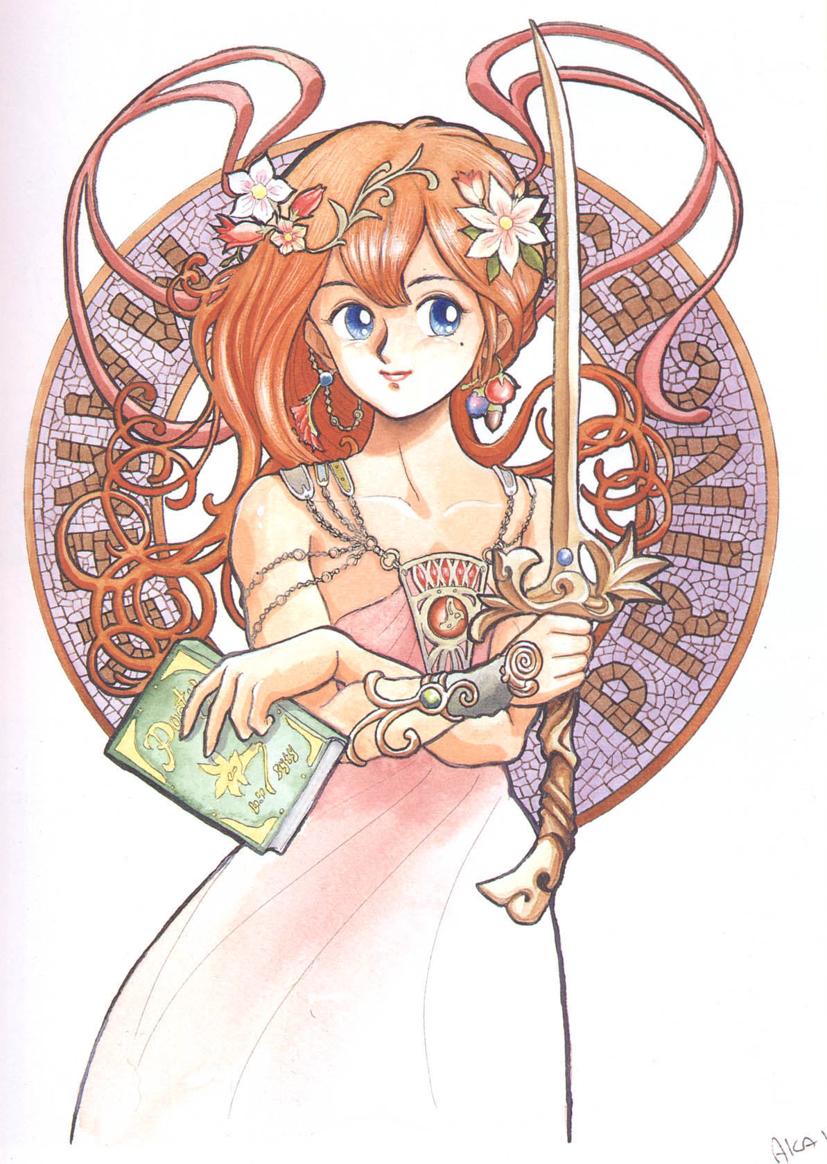 celes chere, tina branford, final fantasy, final fantasy vi, bad id, bad pixiv id, lowres, 1990s (style), amano yoshitaka design, blonde hair, bow, circlet, green eyes, hair bow, hat, leotard, long hair, red eyes, retro artstyle, smile