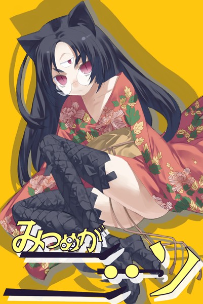 1girlanimal earscat earsextra eyesfemale focusglassesjapanese clotheskimonosolothighhighsyukata