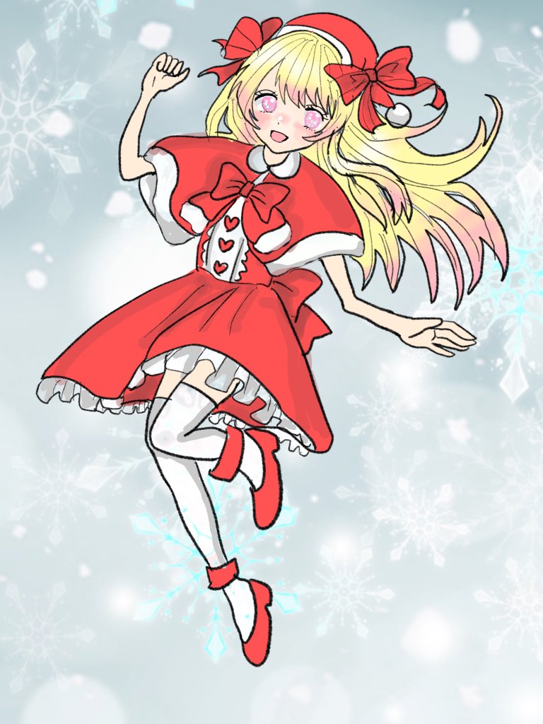 1girlalternate costumecapelethatjumpinglong hairlooking at vieweropen mouthpink eyesred capeletsanta hatsmilesolosukunakaiko