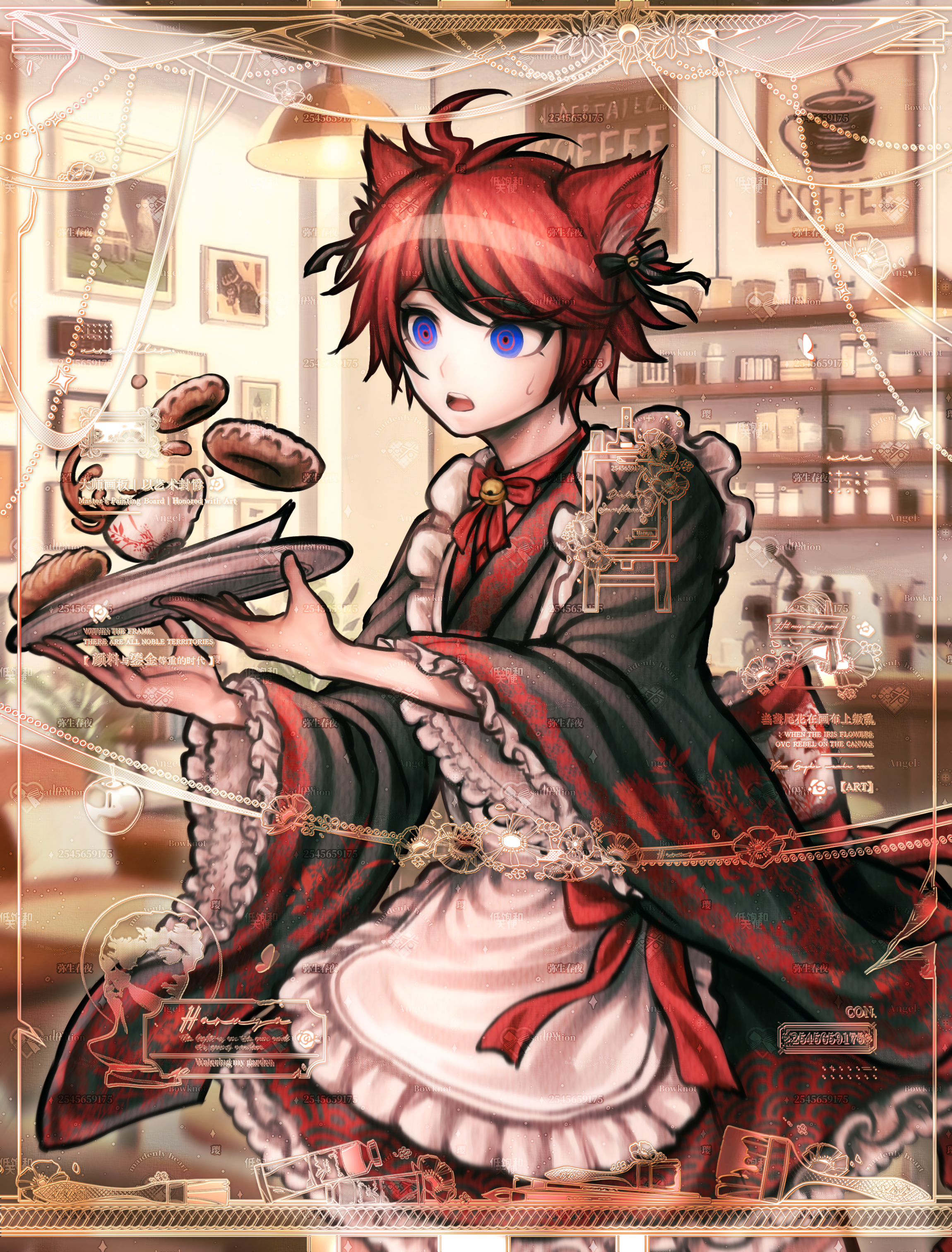 1boyahogeakiinealternate costumeanimal earsartist nameback bowbellblack dressblack hairblue eyesbowcat earscowboy shotcrossdressingcrossdressing (mtf)cupdonutdressenmaidedfoodfrilled sleevesfrillsholdingholding plateindoorskemonomimi modekimono dresskomatsuzaki rui (style)long sleevesmaidmale focusmale maidmulticolored hairneck bellneck ribbonopen mouthpetticoatplatered bowred hairred ribbonribbonshort hairsolostreaked hairsweatteacupteethtoo many watermarkstwo-tone hairupper teeth onlywa maidwatermarkwide sleeves