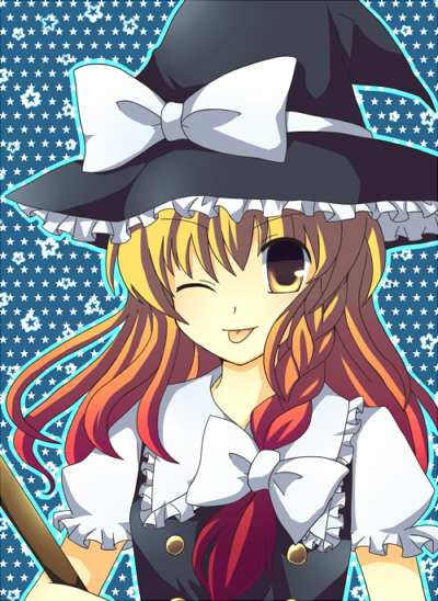 zer00han, poppi (xenoblade), poppi qt (xenoblade), xenoblade chronicles (series), xenoblade chronicles 2, highres, 1girl, android, apron, bow, breasts, chest jewel, hair bow, holding, large breasts, looking at viewer, maid, maid apron, maid headdress, mechanical hands, one eye closed, open mouth, orange eyes, purple hair, red bow, red ribbon, ribbon, robot ears, smile, solo, teeth, throwing, twintails, upper teeth only