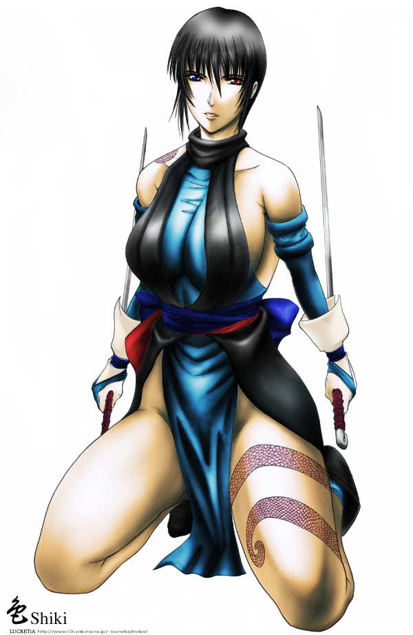 black hairbreastsdetached sleevesheterochromialarge breastsshort hairsideboobswordvery short hairweapon