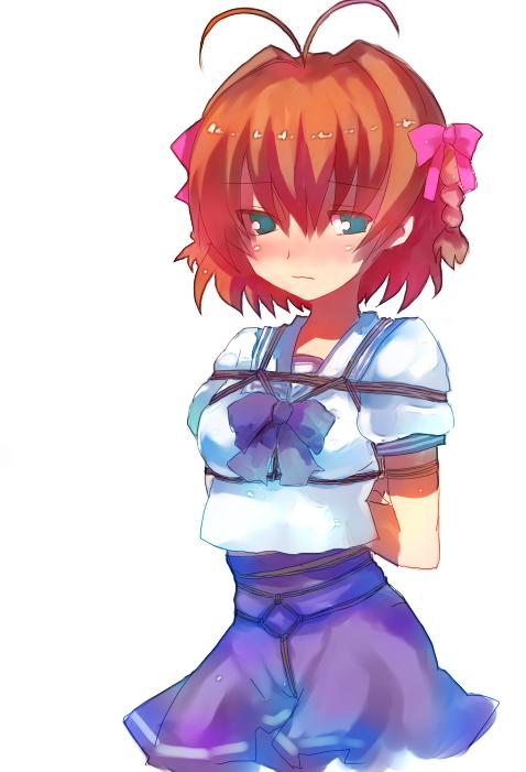 itsumo nokoru, 95-tan, futaba channel, os-tan, archived source, 1girl, anime coloring, asymmetrical bangs, black outline, blue bow, blunt bangs, blunt ends, bow, breasts, brown eyes, brown sash, closed mouth, clothes grab, green bow, hair bow, japanese clothes, kimono, long hair, long sidelocks, long sleeves, looking at viewer, medium breasts, mouth hold, multicolored bow, obi, outline, pink background, pink kimono, pink sleeves, pink theme, red bow, red ribbon, ribbon, sash, sidelocks, simple background, single sidelock, sleeve grab, solo, tasuki, thick outlines, tying, upper body, v-shaped eyebrows, wide sleeves, yellow bow
