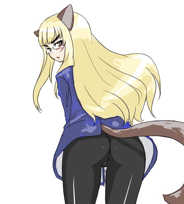 00s1girlanimal earsanusassblonde haircameltoecat earscat tailfemale focusfrom behindglasseslong hairlooking backno pantiesopen mouthpantyhosepussysee-through clothessimple backgroundsolotailthighsuncensoredyellow eyes