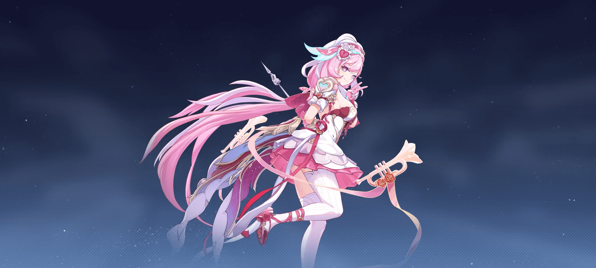 1girlclosed mouthdiamond (shape)diamond-shaped pupilsdressfrom sidehair ornamenthatlong hairlooking at viewermegaphonemulticolored hairpink hairpurple eyesred ribbonribbonsimple backgroundsmilesolosymbol-shaped pupilsthighhighstwo-tone hairvery long hairwhite dresswhite hatwhite thighhighs