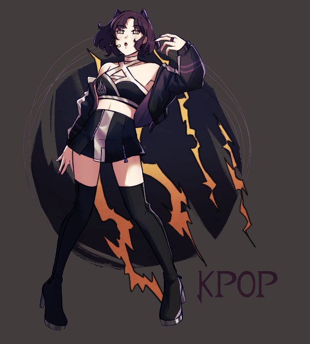 1girlalternate costumeanimal earsbare shouldersblack bootsblack hairblack jacketblack shirtblack skirtbootscat earscat girlchokercrop topfull bodyheadsethigh heel bootshigh heelsjacketjewelrylong sleevesoff shoulderofficial alternate hair lengthofficial alternate hairstyleopen clothesopen jacketopen mouthringshirtshort hairskirtsolostandingwhite choker