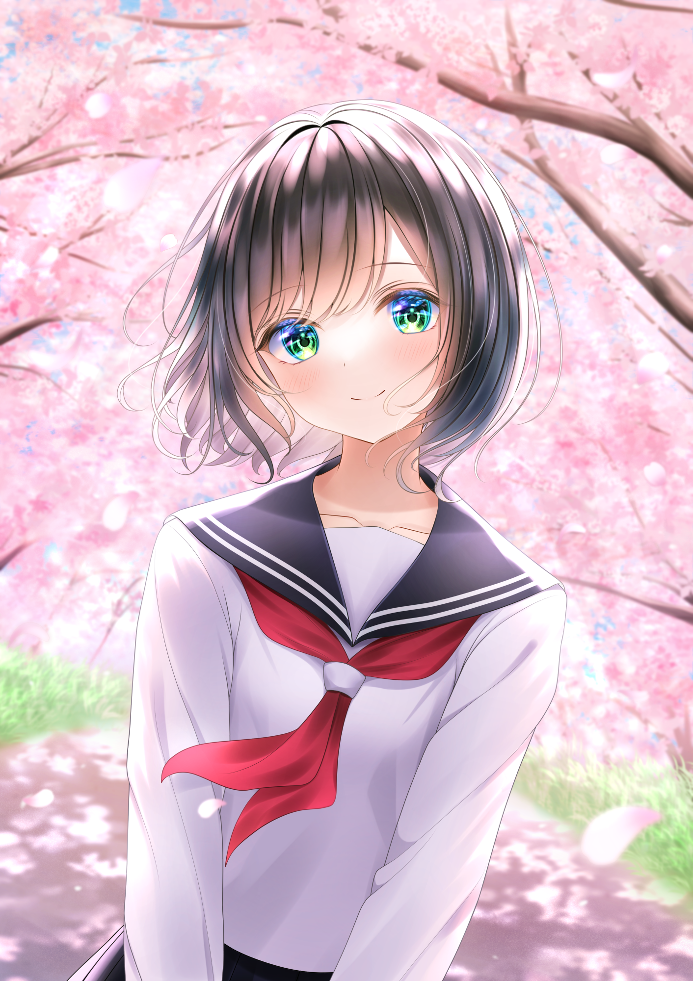kannatsuki noboru, okinaga fuuka, demiourgos no musume, game cg, 1girl, adjusting hair, against wall, antenna hair, bare arms, bare shoulders, black hair, blue eyes, brick wall, cloud, day, dutch angle, female focus, long hair, pleated skirt, sad, shirt, skirt, sky, sleeveless, sleeveless shirt, solo, thighhighs, tree, turtleneck, white thighhighs, zettai ryouiki