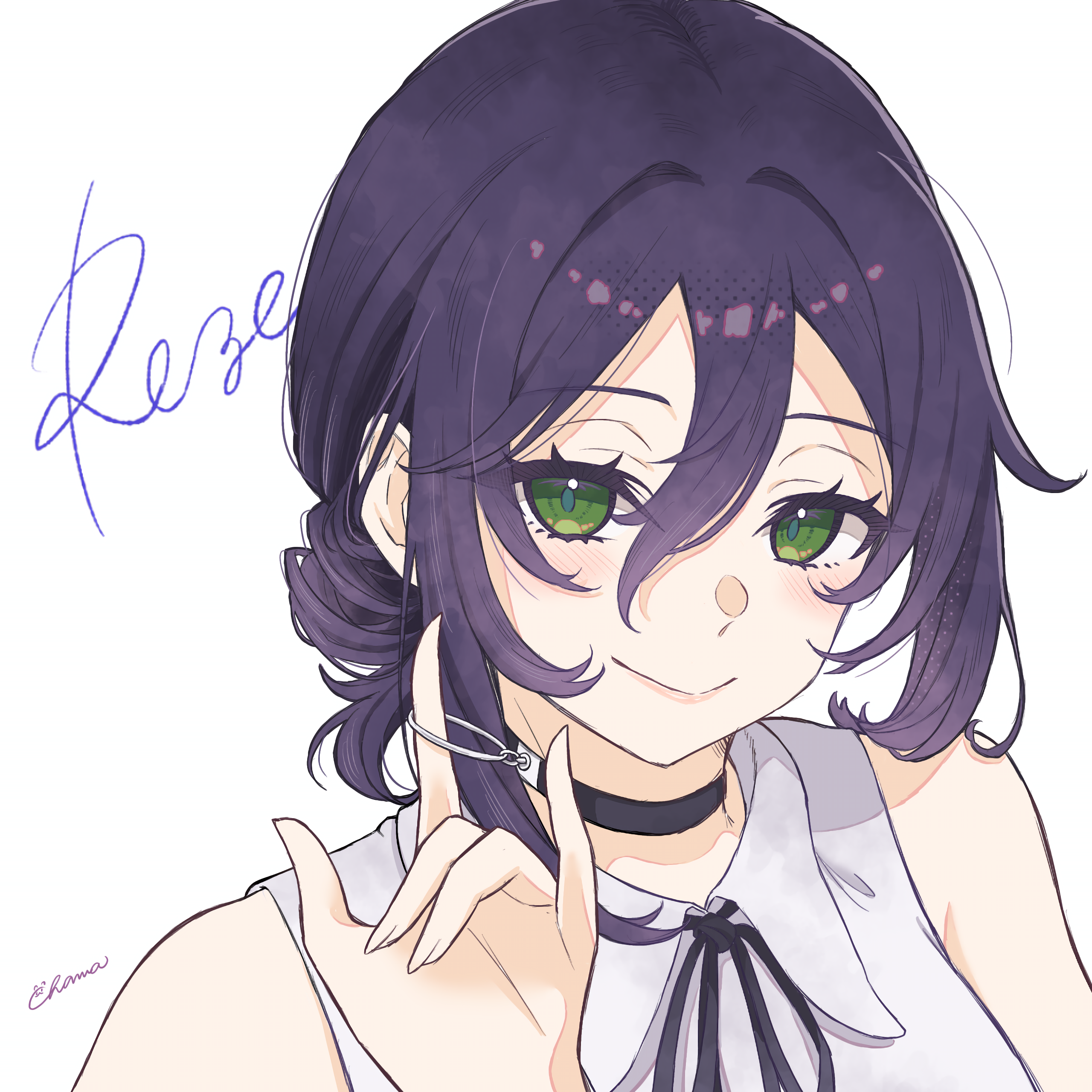 dora one7, yamada ryo, bocchi the rock!, commentary, highres, 1girl, black dress, blue background, blue hair, dress, earrings, expressionless, frilled hairband, frills, hair over eyes, hairband, heart, heart hands, jewelry, looking at viewer, maid, maid headdress, simple background, solo, stud earrings, yellow eyes