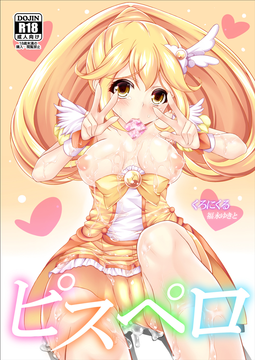 onija tarou, 1girl, blonde hair, brown eyes, clothes lift, dress, dress lift, female focus, panties, simple background, solo, twintails, underwear, white background, white panties