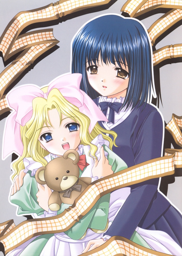 fermelle, camyu, utawarerumono, bad id, bad pixiv id, 00s, 1girl, black wings, blue eyes, blue hair, blush, female focus, matching hair/eyes, simple background, smile, solo, wings