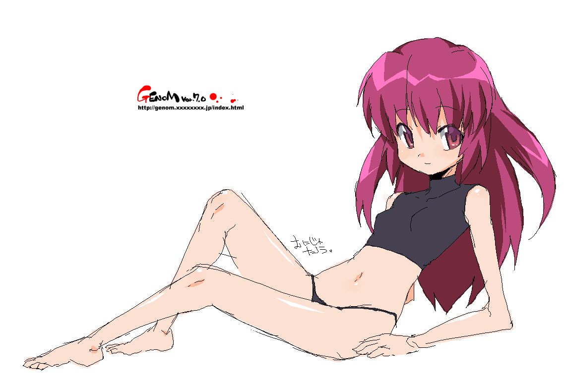 1girlbarefootfeetfemale focusflat chestoekakipink eyespink hairsimple backgroundsolowhite background