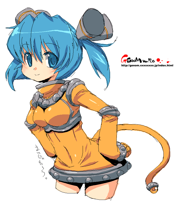 1girlblue eyesblue hairfemale focusmatching hair/eyesoekakisimple backgroundsolotailwhite background