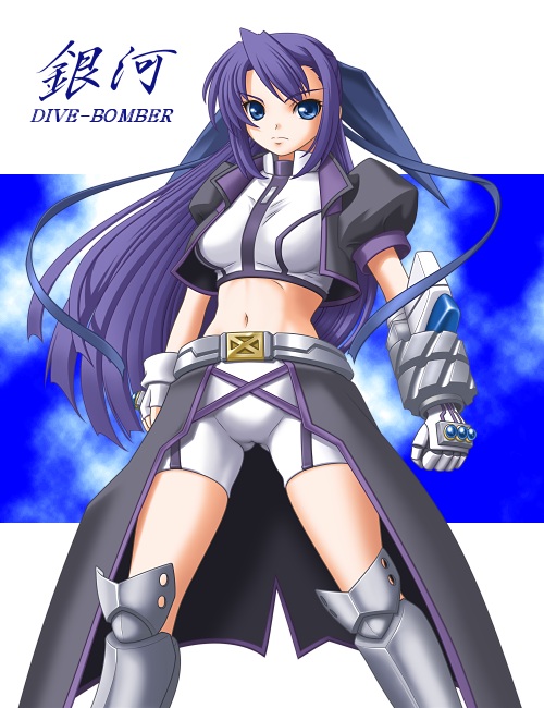 00sblue eyesfingerless glovesgauntletsglovesjacketlong hairmidriffpurple hairshortssolovery long hair
