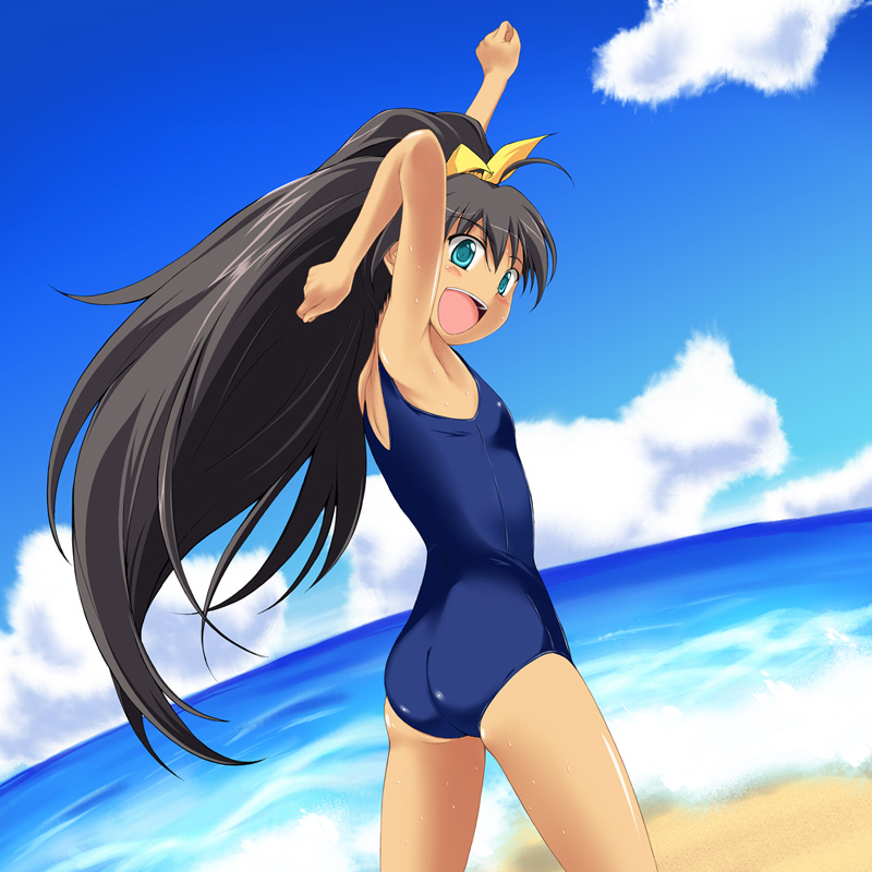 numbers (nanoha), sein (nanoha), lyrical nanoha, mahou shoujo lyrical nanoha, mahou shoujo lyrical nanoha strikers, eyebrows, 00s, 1girl, blue bodysuit, blue hair, blush, bodysuit, facial mark, female focus, from above, solo