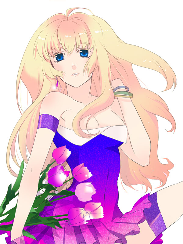 00s1girlblonde hairblue eyesblushbraceletdressearringsfemale focusflowerjewelrylong hairsolotulip