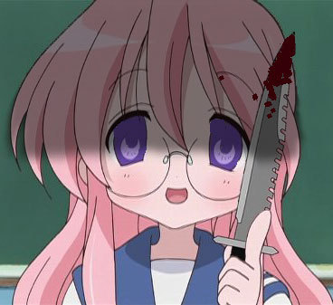 00s1girlbloodcombat knifefemale focusglassesjungle knifeknifepink hairpurple eyesschool uniformserafukusoloweaponyandere