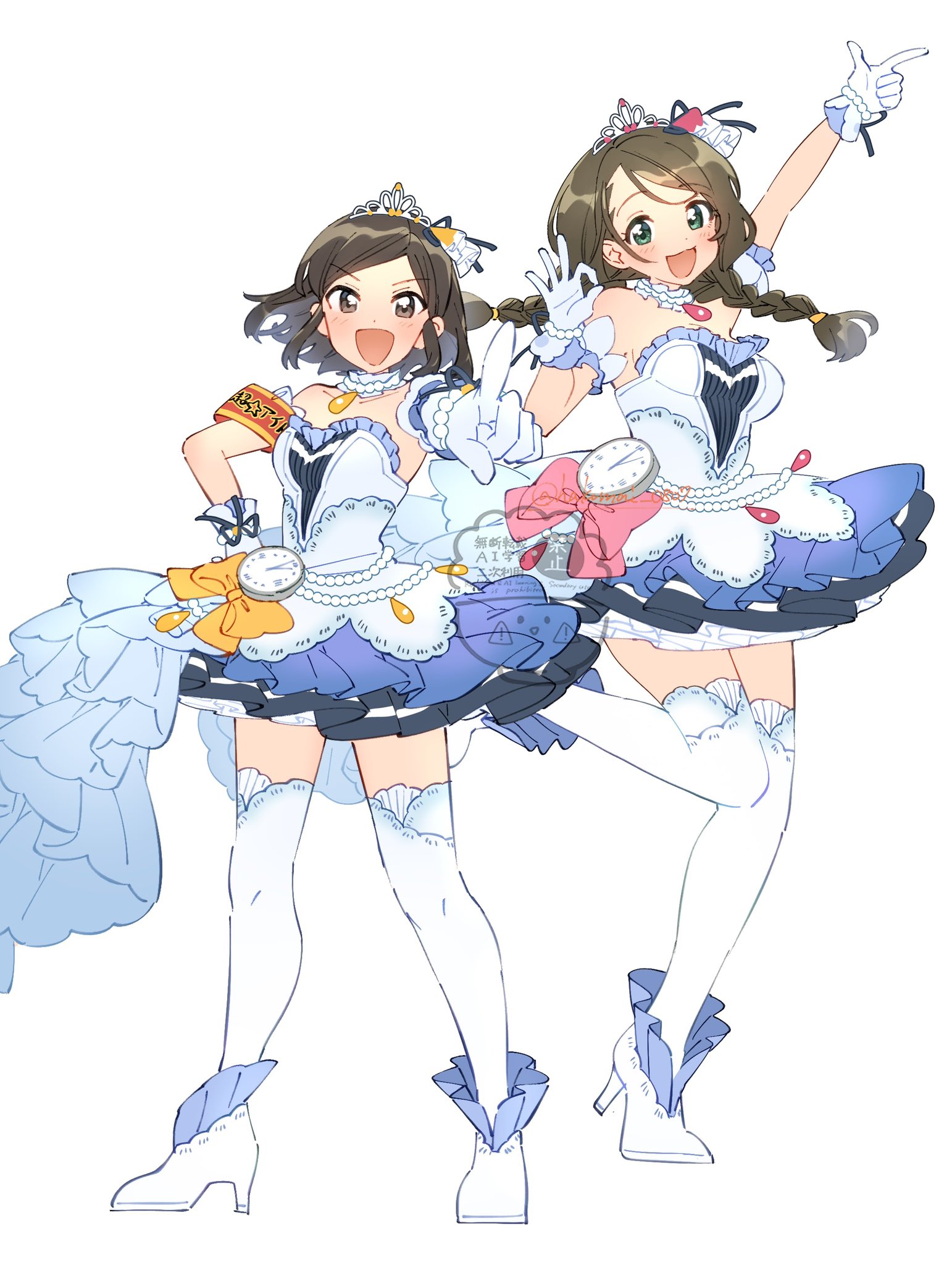 katsuragi atori, hong meiling, touhou, absurdres, commentary request, highres, 1girl, :d, ahoge, black bow, black ribbon, blue eyes, blush, bow, braid, breasts, china dress, chinese clothes, collared shirt, cowboy shot, curtained hair, danmaku, dress, fighting stance, green dress, green hat, hair between eyes, hair bow, hand up, hat, hat ornament, large breasts, long hair, neck ribbon, open mouth, pants, puffy short sleeves, puffy sleeves, red hair, ribbon, shirt, short sleeves, smile, solo, star (symbol), star hat ornament, teeth, twin braids, upper teeth only, white pants, white shirt, wristband