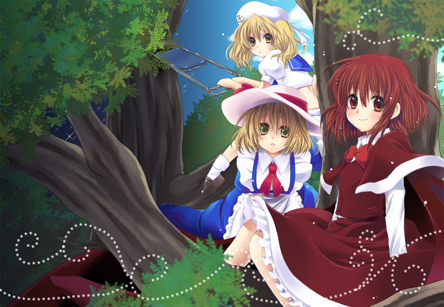 sonetto (parade anthem) (reverse:1999), sonetto (reverse:1999), reverse:1999, highres, 1girl, bare shoulders, beret, dress, from side, grey eyes, hat, long hair, looking at viewer, official alternate costume, orange hair, profile, purple background, red background, sash, shadow, shoulder sash, sleeveless, sleeveless dress, solo, two-tone background, upper body, watermark, white dress, white hat, yellow sash, yexiao bu ai chi yexiao