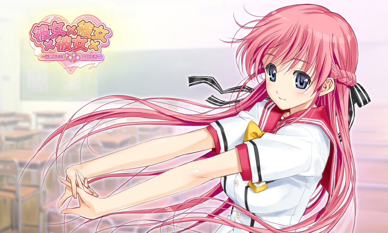 1girlblue eyesfemale focushair spread outhalf updolong hairpink hairschool uniformserafukusolo