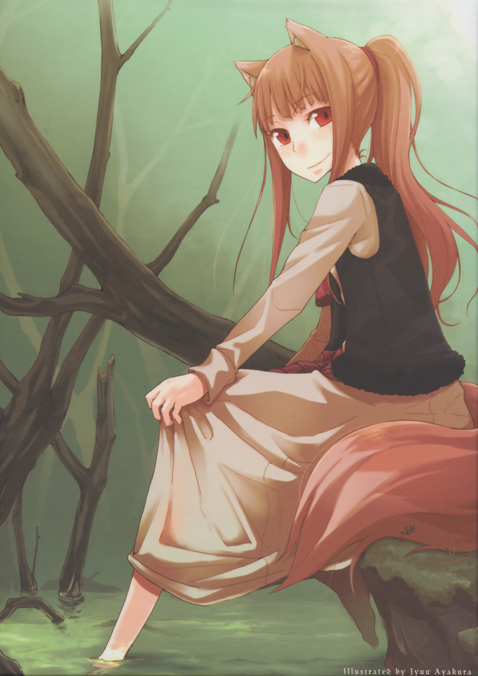 00s1girlalternate hairstyleanimal earsbarefootbrown hairfemale focuslong hairponytailred eyessittingsoaking feetsolotailwaterwolf earswolf tail