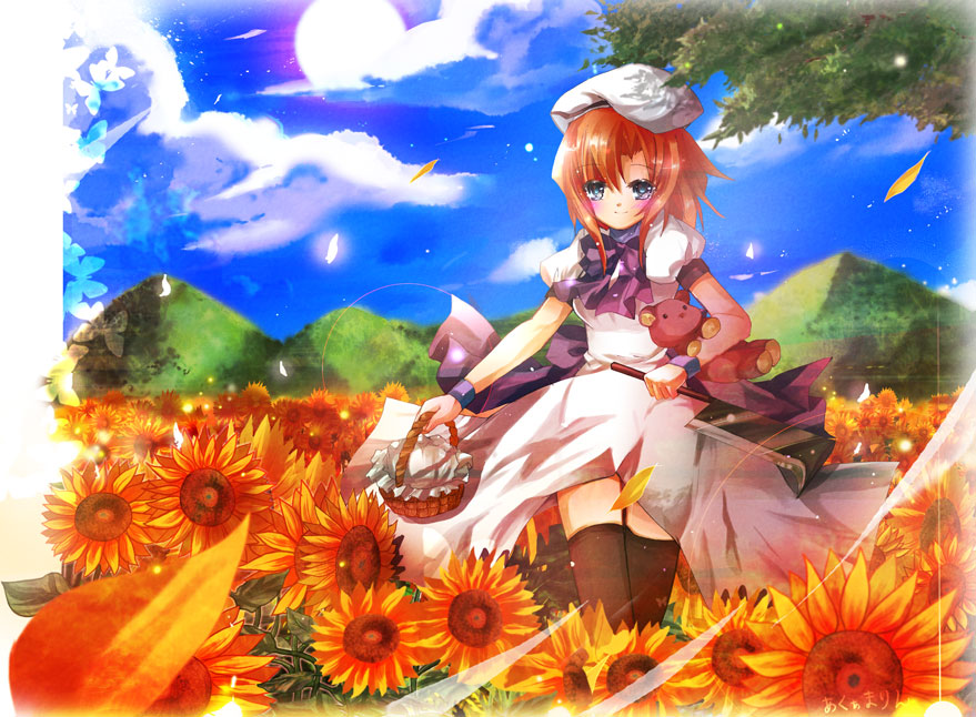 00sblue eyesdressflowerorange hairred eyesshort hairsolostuffed animalstuffed toysunflowerteddy bear