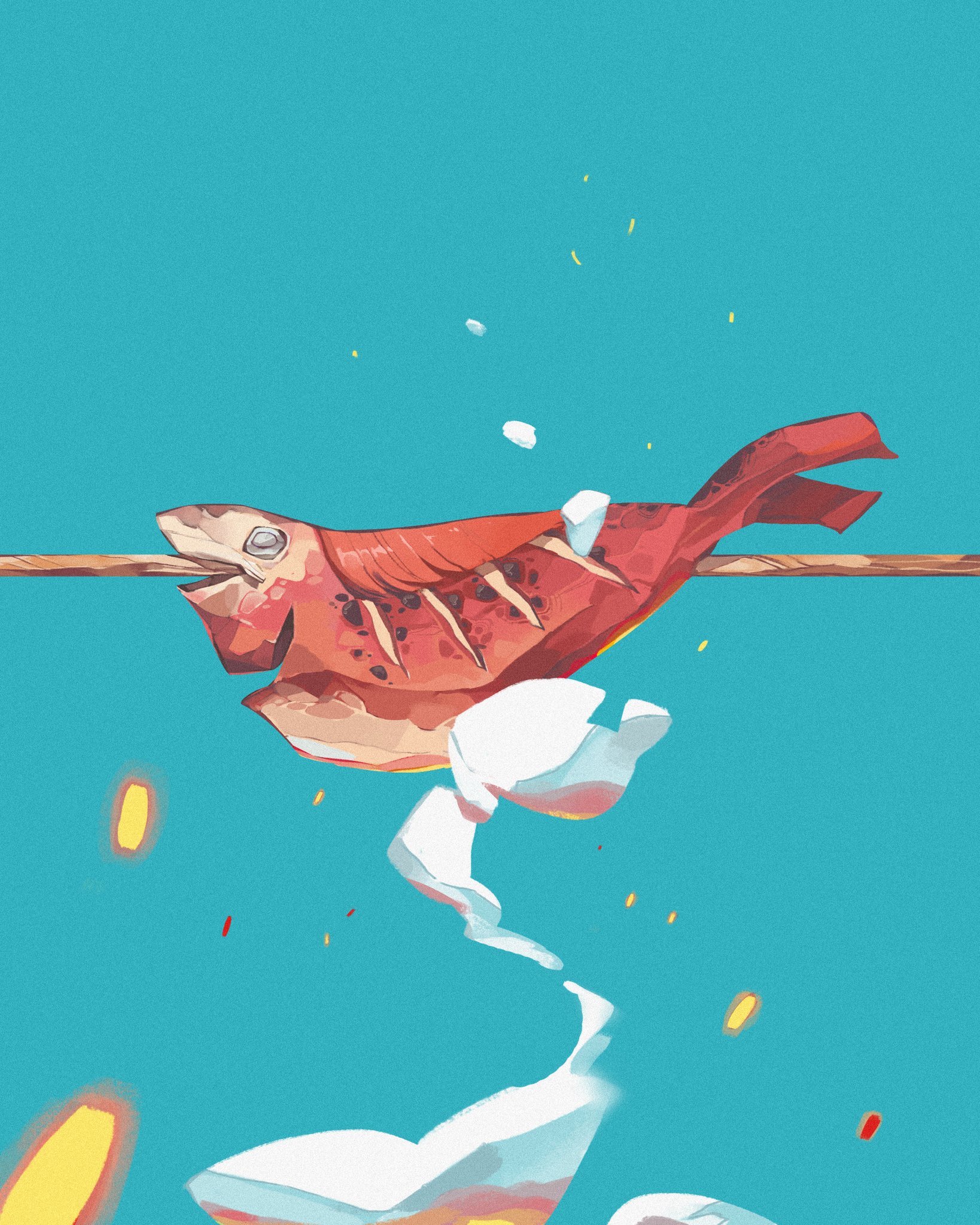 blue backgroundcookingfish (food)floating embersghibli redraw challenge (meme)memeribsskinnedsmoke