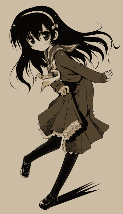 horibe hiderou, original, yours (art book), absurdres, highres, 1girl, female focus, hakama, hakama skirt, japanese clothes, miko, red hakama, skirt, solo