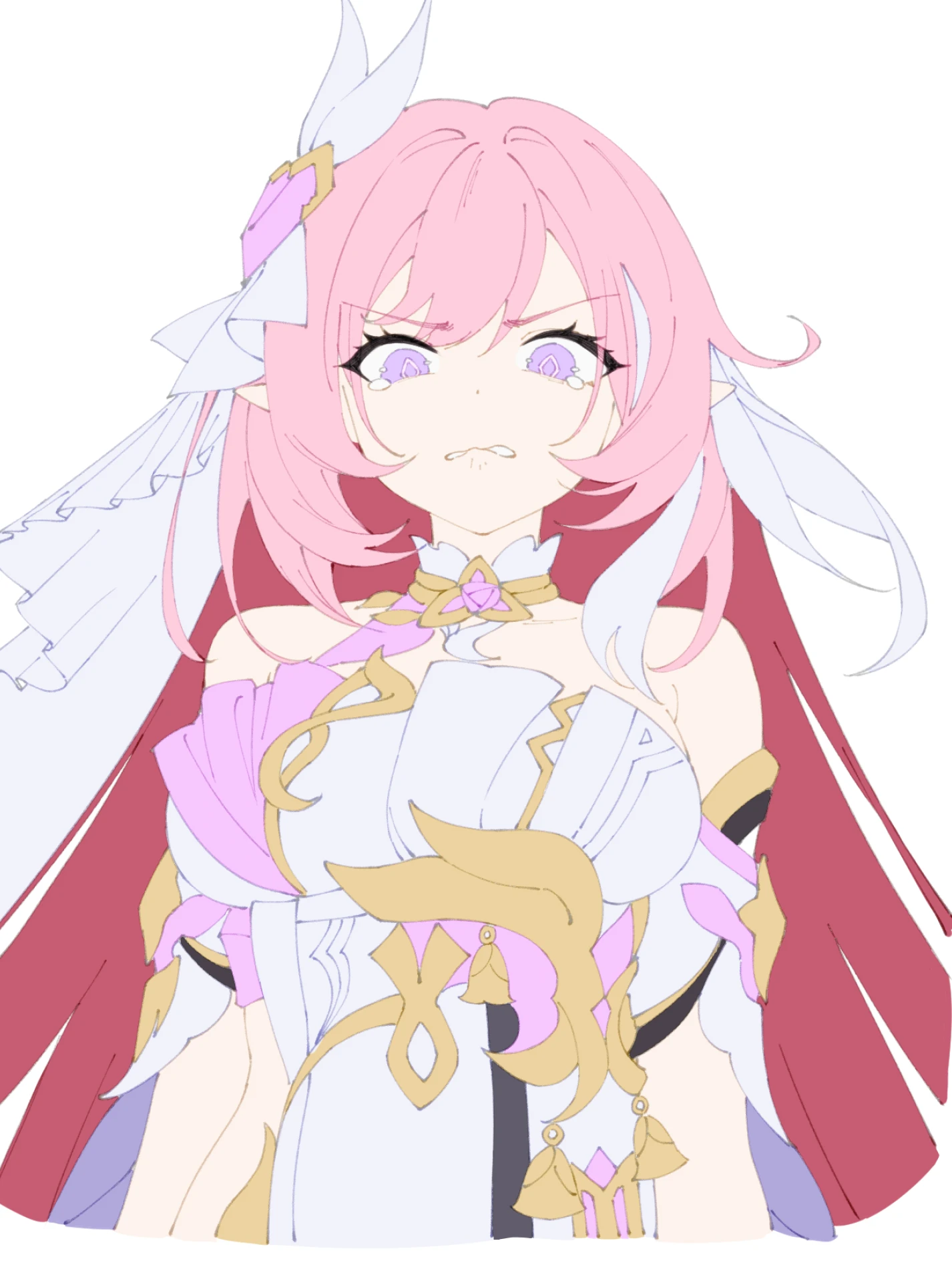 ixy, leonne, fushigiboshi no futago hime, 00s, 1girl, arm support, blush, brown hair, dress, elbow gloves, fang, female focus, flat chest, gloves, jewelry, long hair, looking at viewer, necklace, orange hair, orange shoes, ponytail, puffy sleeves, shoes, short sleeves, simple background, sitting, smile, solo, tiara, white background