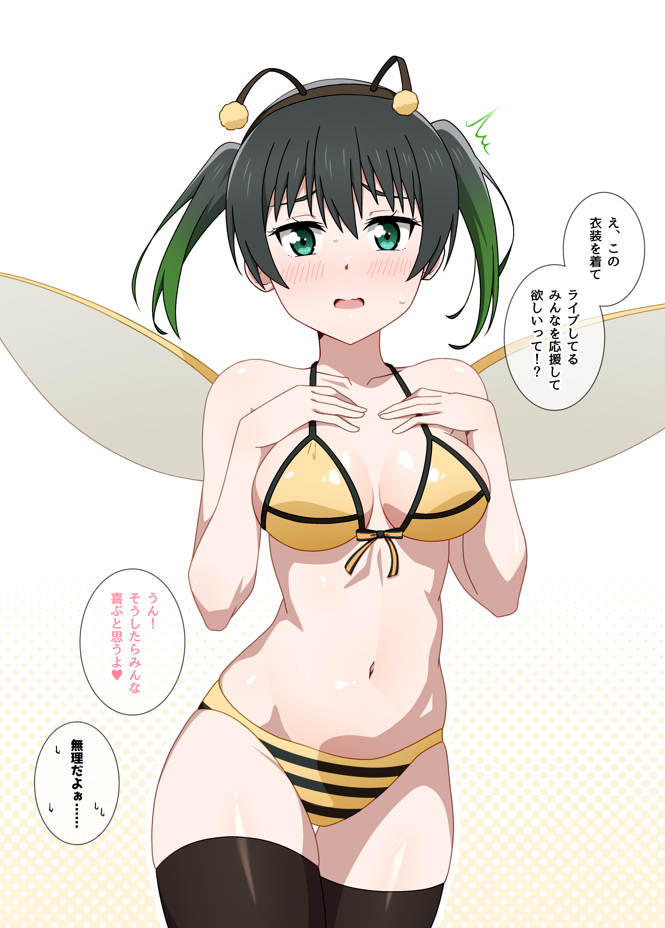 kannazuki nemu, kushida kira, otaku masshigura, game cg, 1girl, bell, breasts, cleavage, collar, dress, female focus, glasses, green eyes, large breasts, no bra, open clothes, orange hair, solo
