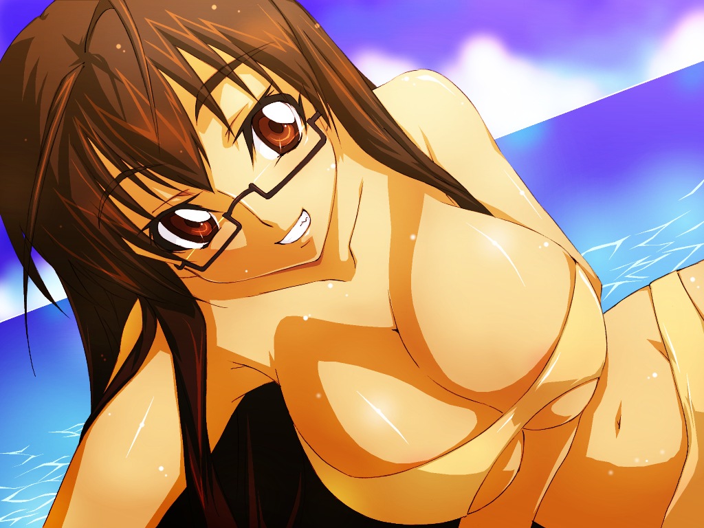 00sbikinibreastsbrown eyesbrown haircleavagedaydutch angleglasseslarge breastslong hairnavelsmilesoloswimsuitunderboobwater