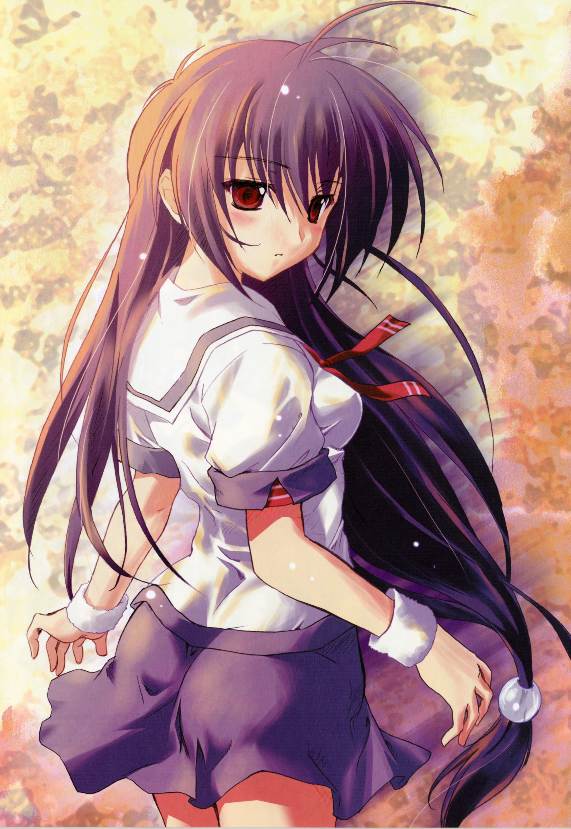 00s1girlahogehair ornamentiriyalong hairlow-tied long hairpurple hairred eyesschool uniformserafukusphere hair ornament