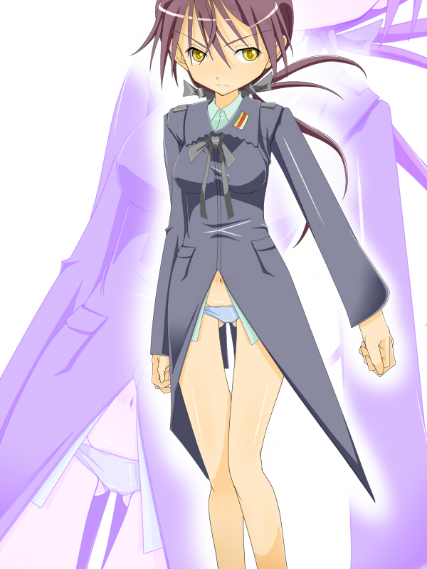 00s1girlblue pantiesbrown hairfemale focuslegslong hairlowleglowleg pantiesmilitarymilitary uniformnavelpantiesponytailpurple hairribbonsolothigh gaptwintailsunderwearyellow eyeszoom layer