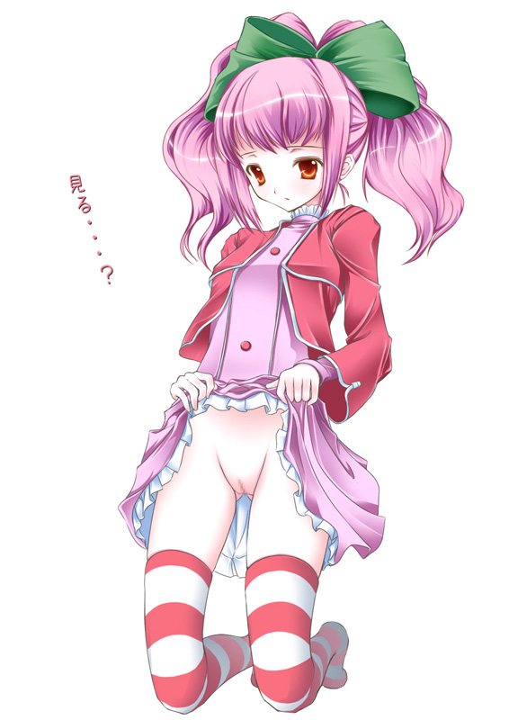 00scensoredcleft of venusclothes liftkneelinglolino pantiesnudepink hairpussyskirtskirt liftsockssolostriped clothesstriped socksstriped thighhighsthighhighs