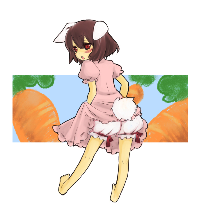 1girlanimal earsbloomersblushdressfemale focusfull bodyplantrabbit earsribbonshort hairsolounderwearwhite backgroundwhite bloomers