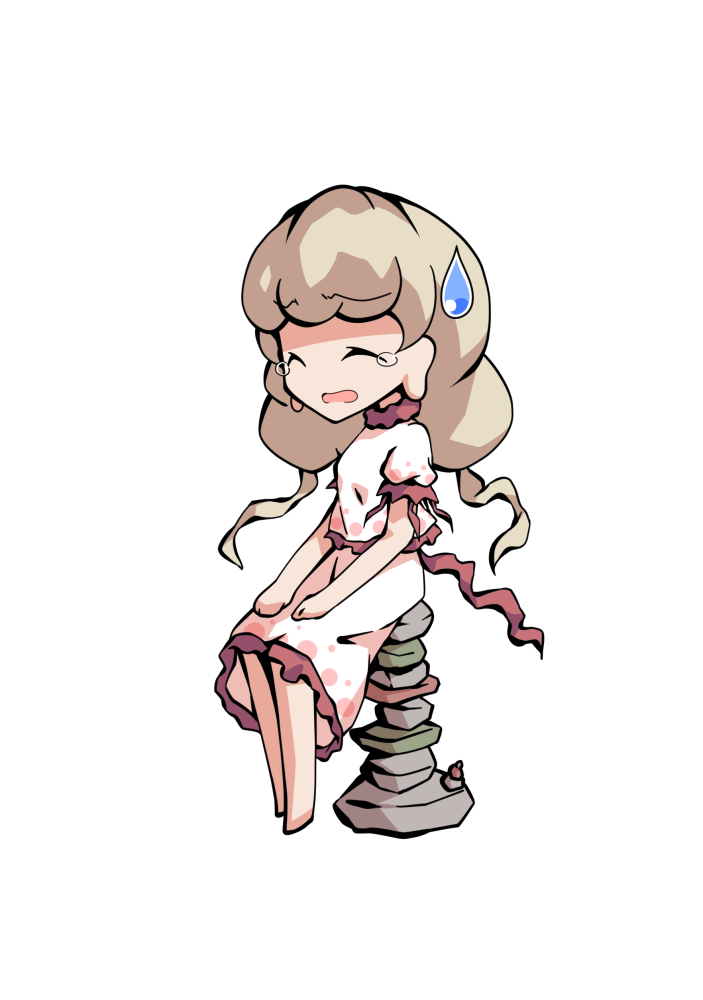 1girlbarefootblonde hairchibichibi onlyfrilled shirtfrilled skirtfrillsfull bodyhands on own kneeslong earlobeslong hairpuffy short sleevespuffy sleevesrockrock balancingshirtshort sleevessittingskirtskirt setsolotachi-etransparent backgroundwhite shirt