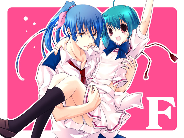 00s1boy1girlarm upblack socksblue bowblue bowtieblue hairbowbowtiecarryingcollared shirtgreen hairkneehighsloaferslooking at viewerponytailprincess carrypuffy short sleevespuffy sleevesred eyesshirtshoesshort hairshort sleevessockswhite shirt