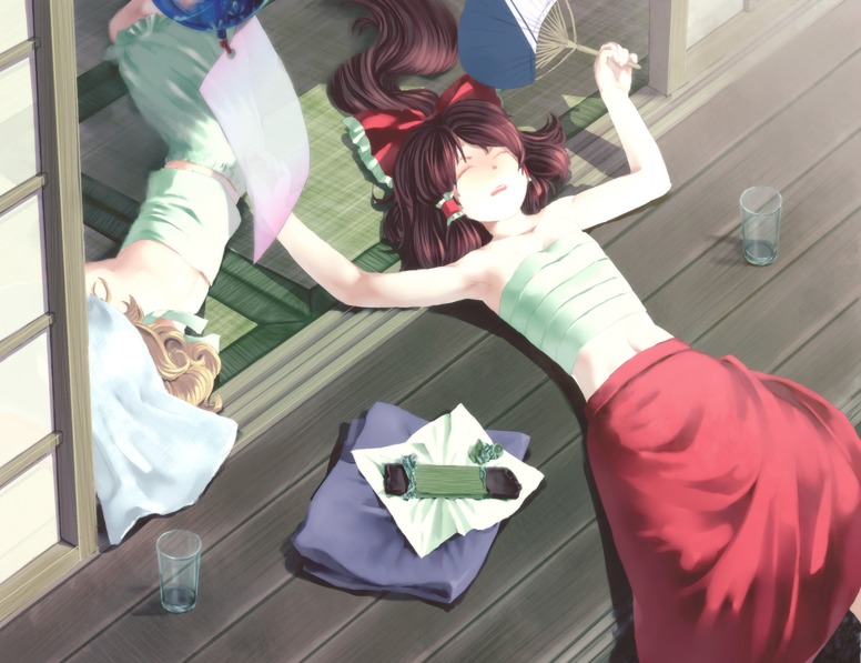 2girlsarmpitsblonde hairbloomersclosed eyesfemale focushand fanhotlyingmultiple girlson backon sideoutstretched armsporchsarashisleepingspread armsunderwearunderwear onlyveranda