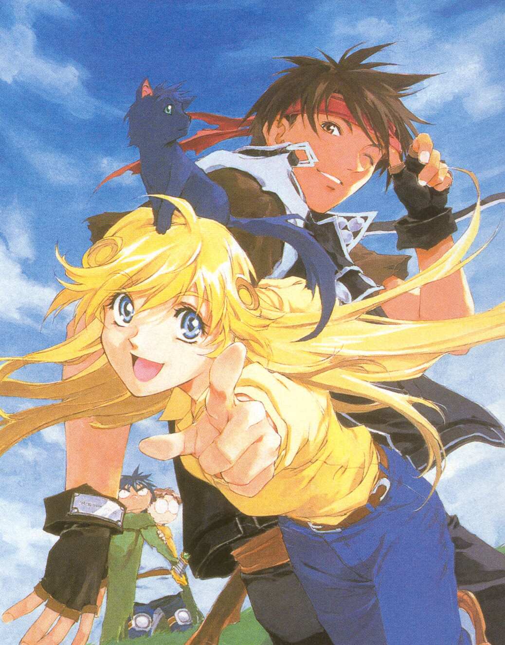 1girl3boysbeltblack hairblonde hairblue eyesfingerless glovesglassesglovesheadbandmultiple boys