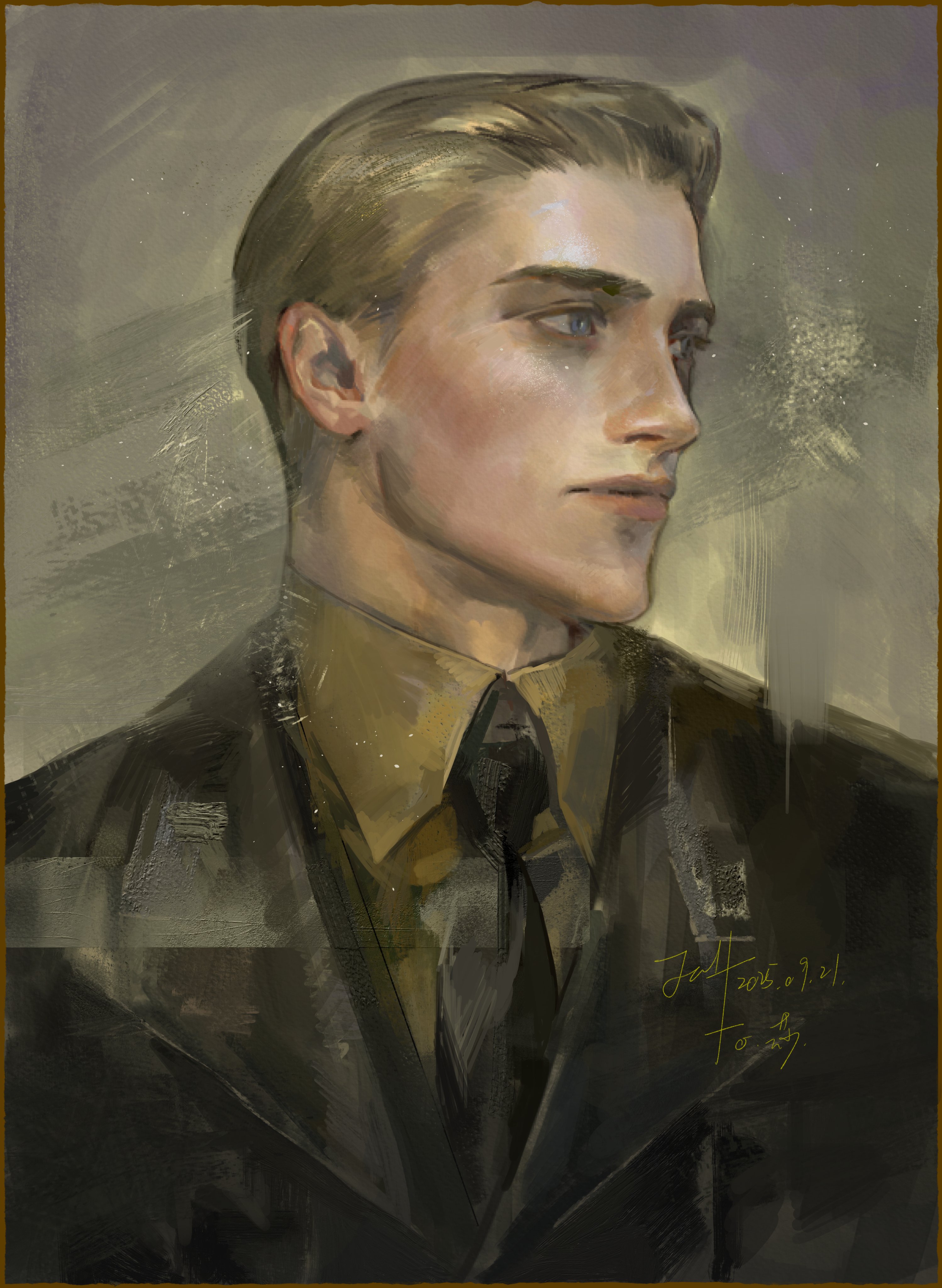 1boyblack jacketblack necktieblonde hairblue eyesclosed mouthcollared shirtdatedhair slicked backjacketlapelslipslooking to the sidemale focusnecktieportraitshirtshort hairsolosuit jacketwing collaryellow shirt