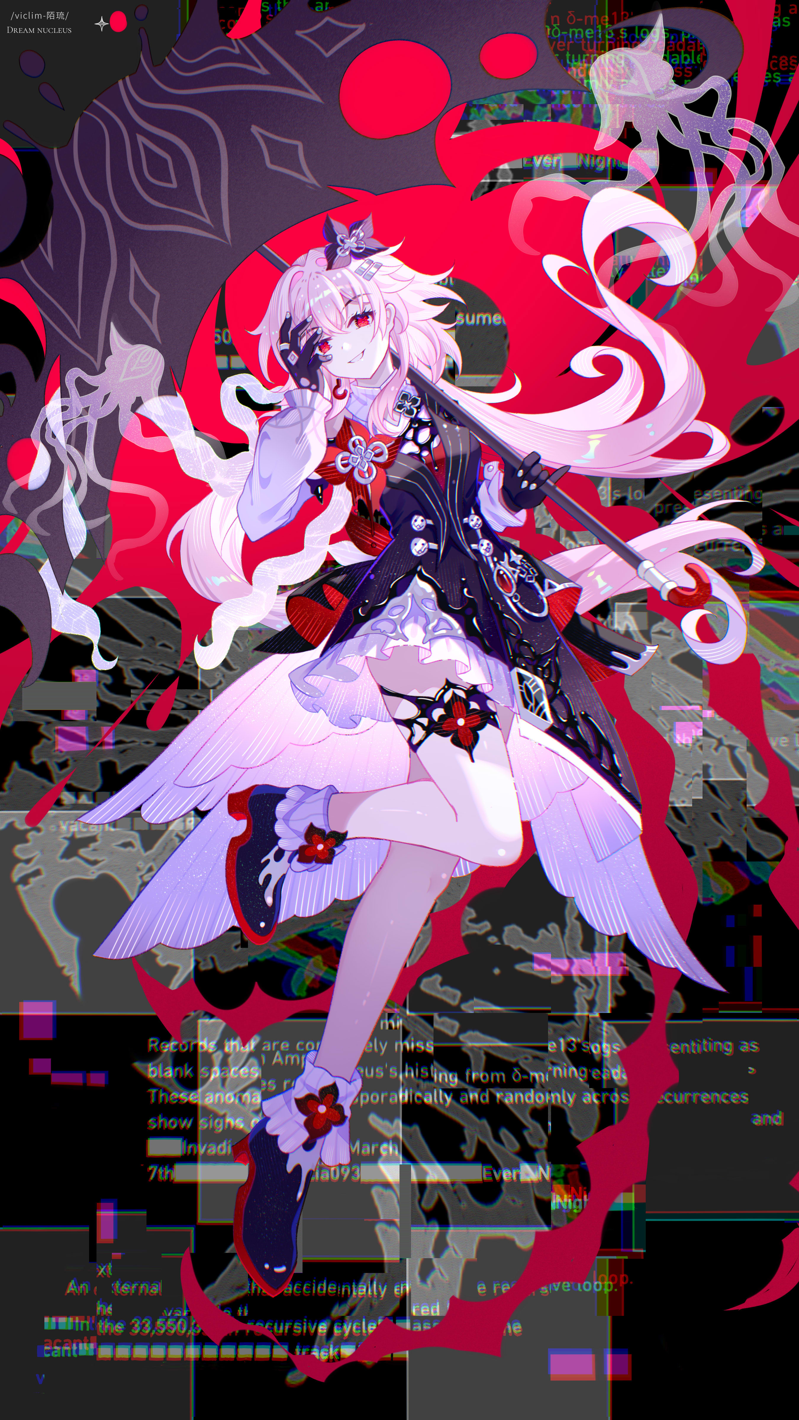 1girlblack bootsblack dressblack flowerblack glovesblack umbrellabootsdressfloating hairflowerflower ornamentfull bodygloveshair between eyeshair flowerhair ornamentholdingholding umbrellalong hairlong sleeveslooking at viewerofficial alternate costumeofficial alternate eye colorofficial alternate hair lengthofficial alternate hairstyleparted lipspink hairred eyessmilesoloumbrella