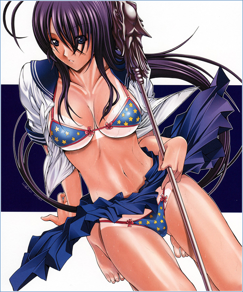 kawagishi keitarou, hizuki shino, ringetsu, shin ringetsu, absurdres, highres, 00s, 1girl, ass, barefoot, bed, black hair, blue eyes, breast press, breasts, censored, convenient censoring, covering privates, feet, female focus, hugging own legs, knees to chest, large breasts, legs together, nude, sitting, smirk, soles, solo