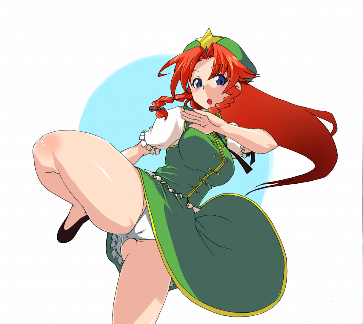 1girlbraidchina dresschinese clothesdressfemale focushatlong hairpantiesred hairribbonsolotwin braidsunderwear