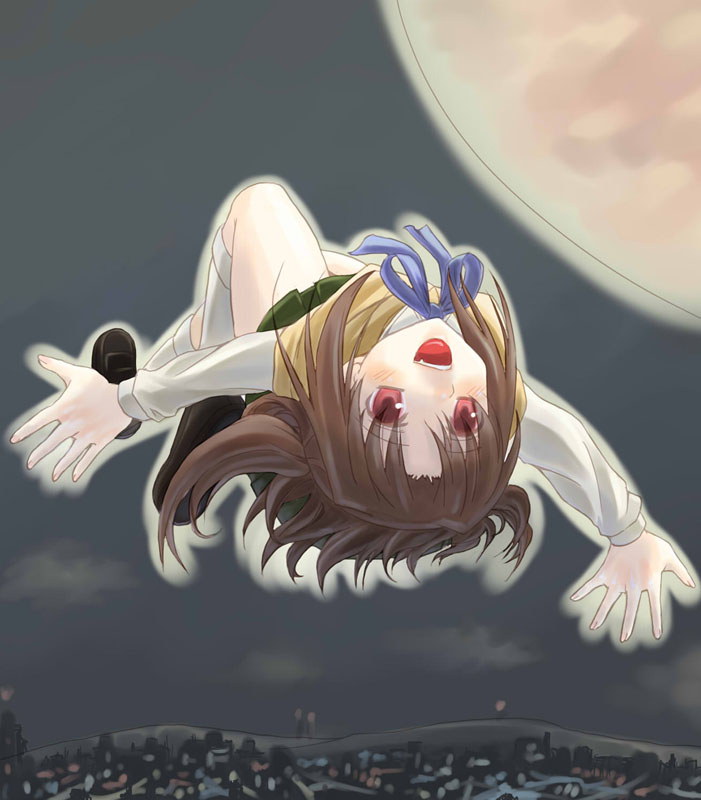 00s1girlblushcityscapefangfemale focusflyingfull moonmoonnightred eyesschool uniformserafukusmilesoloupside-downvampire