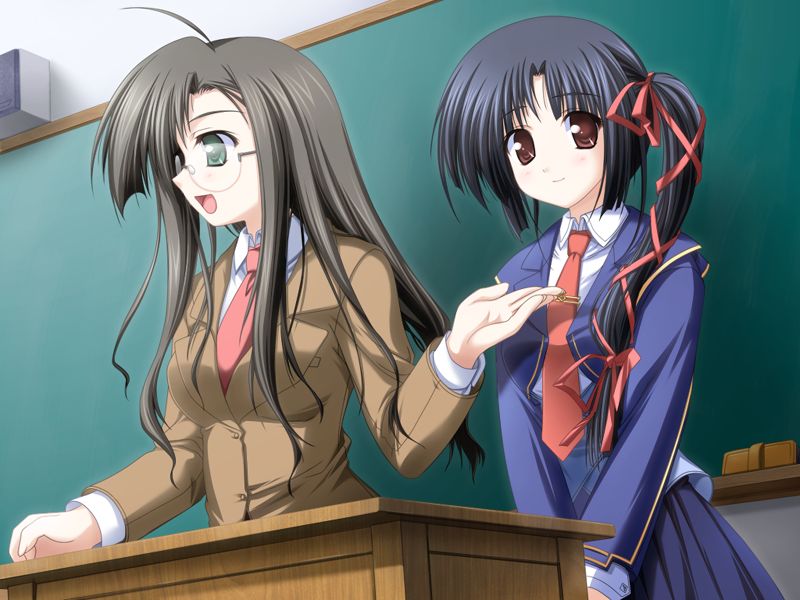 mizuki makoto, katsura kokoro, school days, 00s, 1girl, black hair, blue background, bow, female focus, hair ornament, jewelry, looking at viewer, navel, necklace, one eye closed, smile, solo, white background