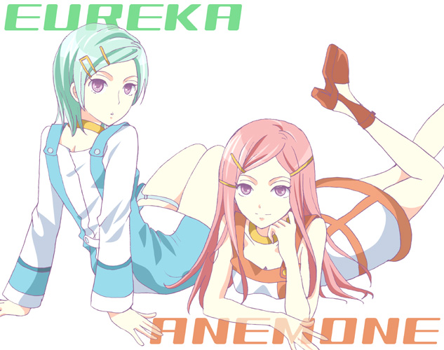 00s2girlscollardressgreen hairhair ornamenthaircliplong hairlooking backlyingmultiple girlson stomachpink hairpurple eyesshort hair