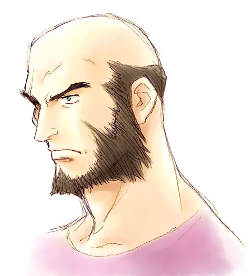 1990s (style)1boybaldbeardblack hairblue eyesfacial hairmale focusretro artstylesketchsolowhite background