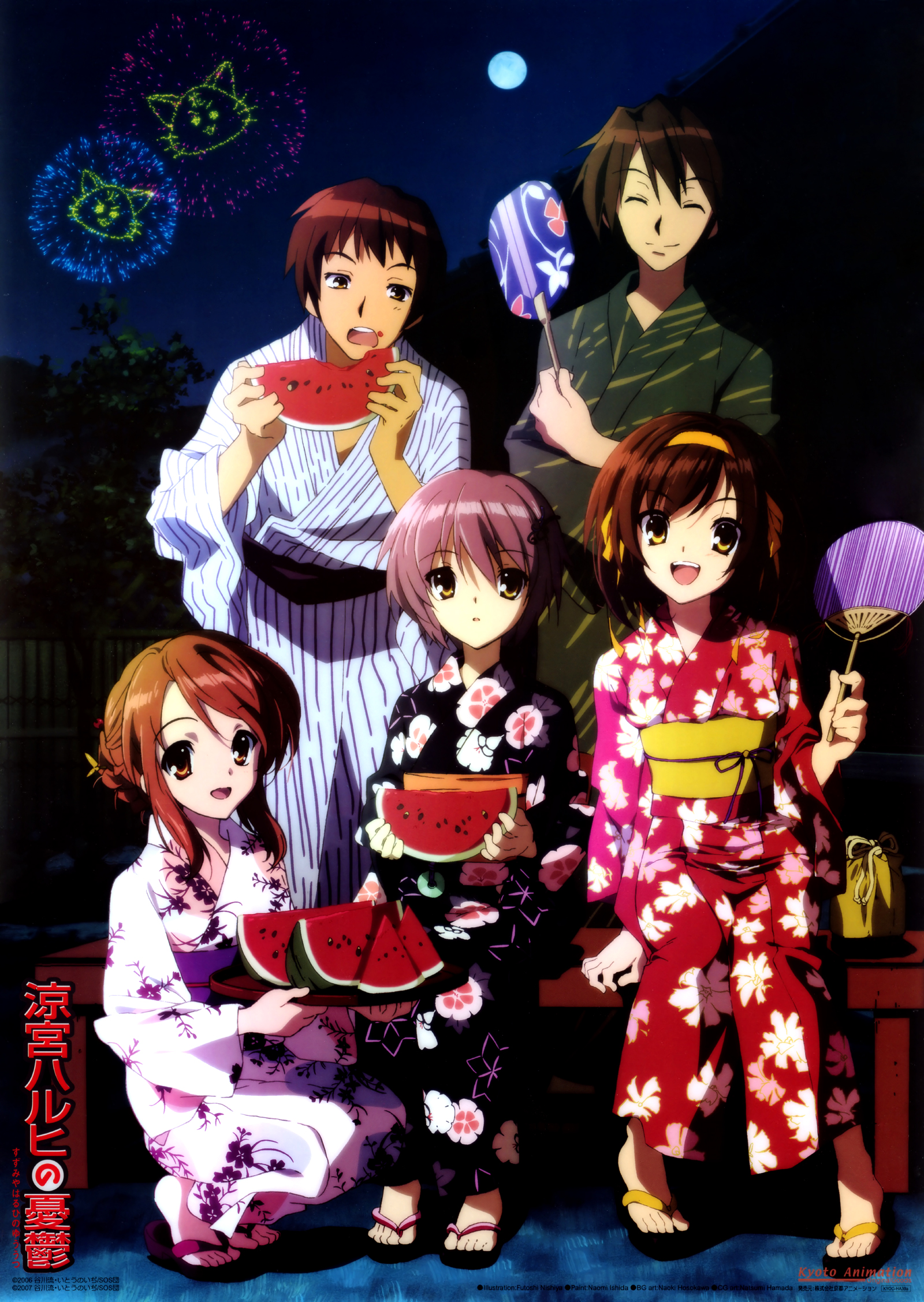 00s2boys3girlsaerial fireworkscopyright nameeveryonefeetfireworksfoodfruitfull bodyhand fanjapanese clotheskimonomoonmultiple boysmultiple girlsno sockspaper fansandalssquattingtoesuchiwawatermelonyukata